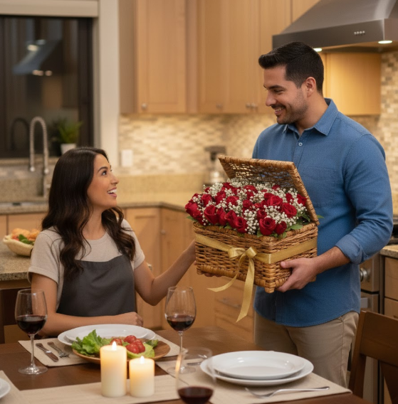 Tesoro Floral es una canasta llena de significado, compuesta por rosas rojas frescas cuidadosamente dispuestas y acompañadas por la delicadeza de la gypsophila, creando una composición clásica, abundante y profundamente romántica.