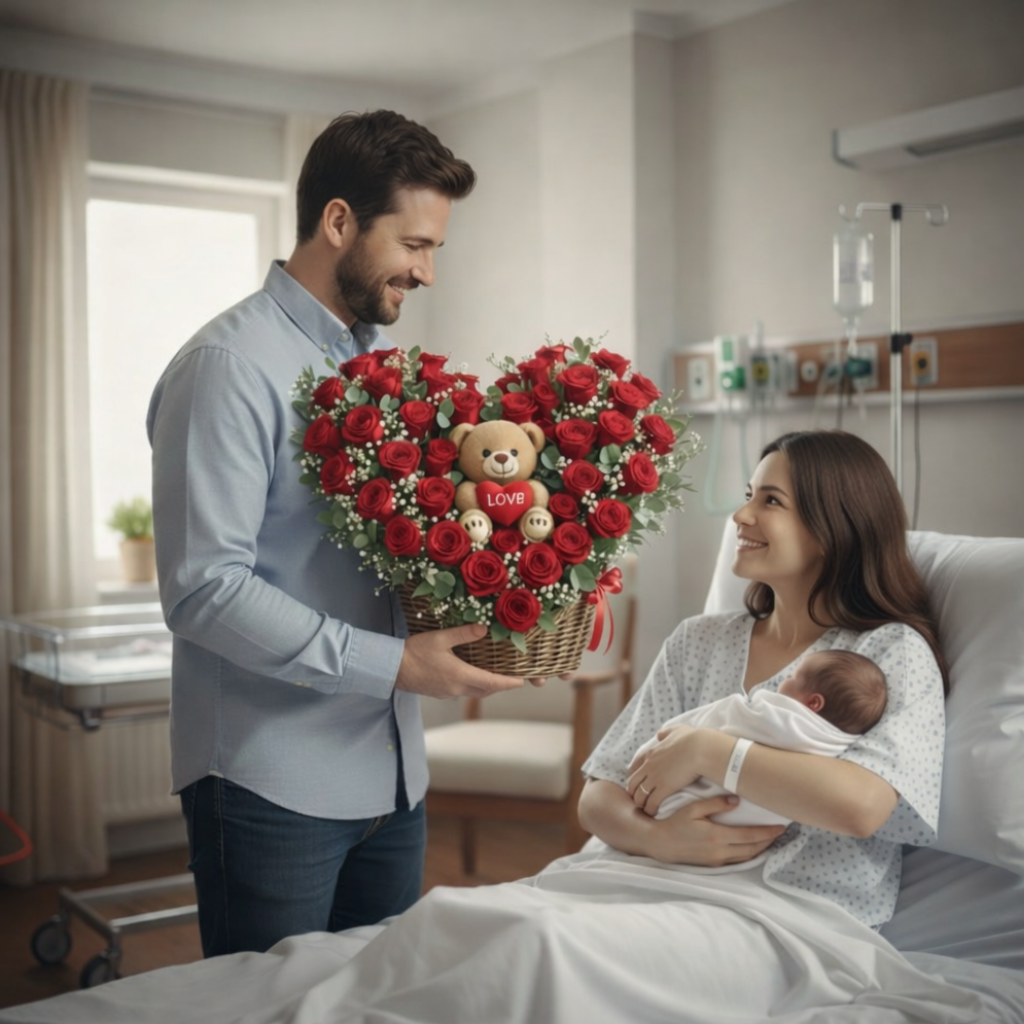 Ideal para sorprender en clínica, para el primer encuentro después del nacimiento o para acompañar ese momento donde todo cambia y el amor se multiplica.
