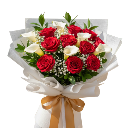 Serenata de Amor es un bouquet que combina la intensidad de las rosas frescas con la pureza de los cartuchos blancos, creando una composición armoniosa que transmite amor, gratitud y ternura en su forma más elegante.