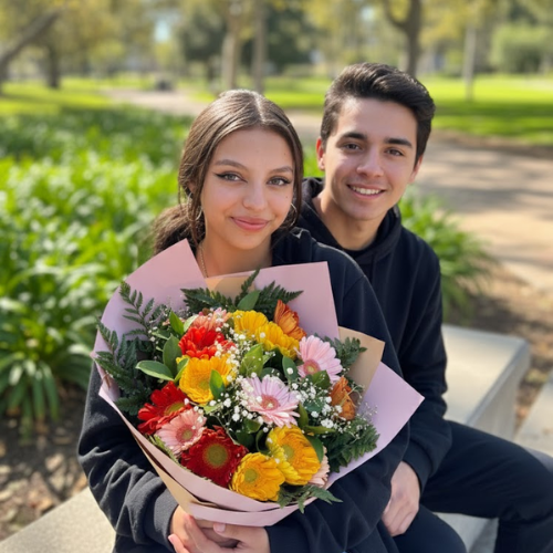 Su diseño colorido y equilibrado convierte este ramo en un regalo perfecto para contagiar alegría, celebrar la amistad o simplemente darle luz a tu hogar.